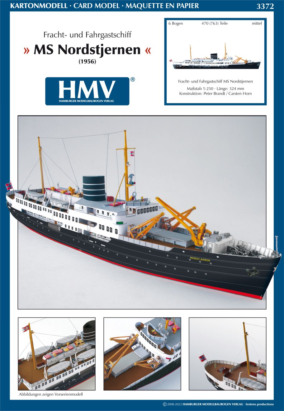 Das beliebte Modell der Nordstjernen wurde für die zweite Auflage umfangreich und liebevoll von Carsten Horn überarbeitet. Neben vielen grafischen Ergänzungen und farblichen Anpassungen ist nun z. B. auch die Inneneinrichtung der Brücke mit im Bogen erhalten.