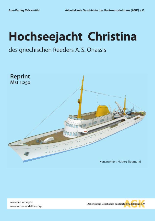 Das hier dargestellte Schiff wurde Anfang der 1950er Jahre durch Aristoteles Sokrates Onassis, einem griechischem Reeder, aus einer Fregatte der "River-Klasse" zu einer Luxusjacht umgebaut. Seine Witwe schenkte es später dem griechischen Staat und nach weiteren Umbauten fährt das Schiff heute noch unter der Flagge Maltas als "Christina O". Das Schiff war als "Christina" knapp 100 m lang und hatte eine Verdrängung von 2250 t. Es war extravagant eingerichtet.