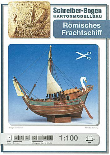 Dieses Modell eines römischen Frachtschiffs besticht durch die außergewöhnlich schöne Gestaltung. Bei der Konstruktion wurde auch bei den Innenbauteilen auf größtmögliche Originaltreue geachtet: die Spanten haben Holzmaserung, der Mast läuft durch das Deck bis zu seiner Aufnahme am Kiel. Ein attraktives Modell für anspruchsvolle Modellbauer.
