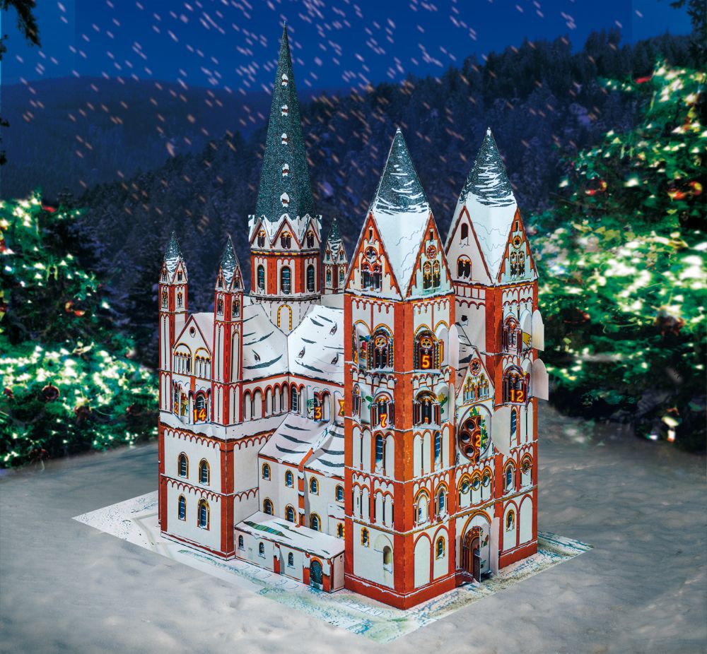 Wunderschönes Modell des Limburger Doms als Adventskalender mit adventlichen Motiven hinter den Türchen.