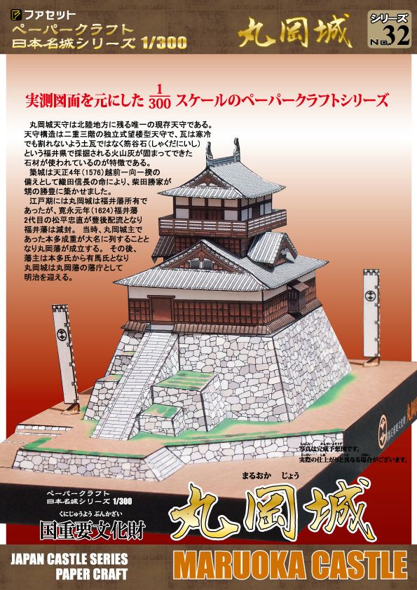 Maruoka ist die einzige Turmfestung in der Hokuriko Region, die heute noch erhalten ist. Shigeru Ishihara hat die Burg in seinem aktuellen Zustand als Modell entwickelt. Eine tolle Ergänzung der Serie japanischer Burgen in 1:300.