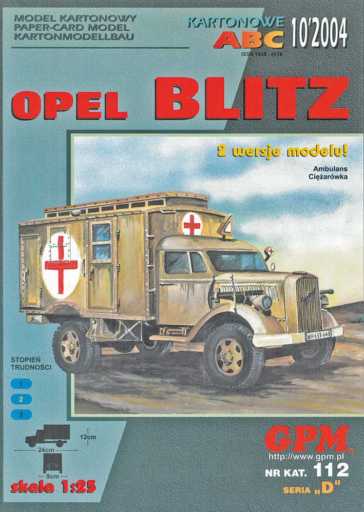 Gealterte Farbgebung mit Fässern und Kanistern als Ladung. Das Modell kann wahlweise mit Pritschenaufbau und Plane oder mit Kastenaufbau als Sanitätsfahrzeug gebaut werden. Mit Inneneinrichtung.