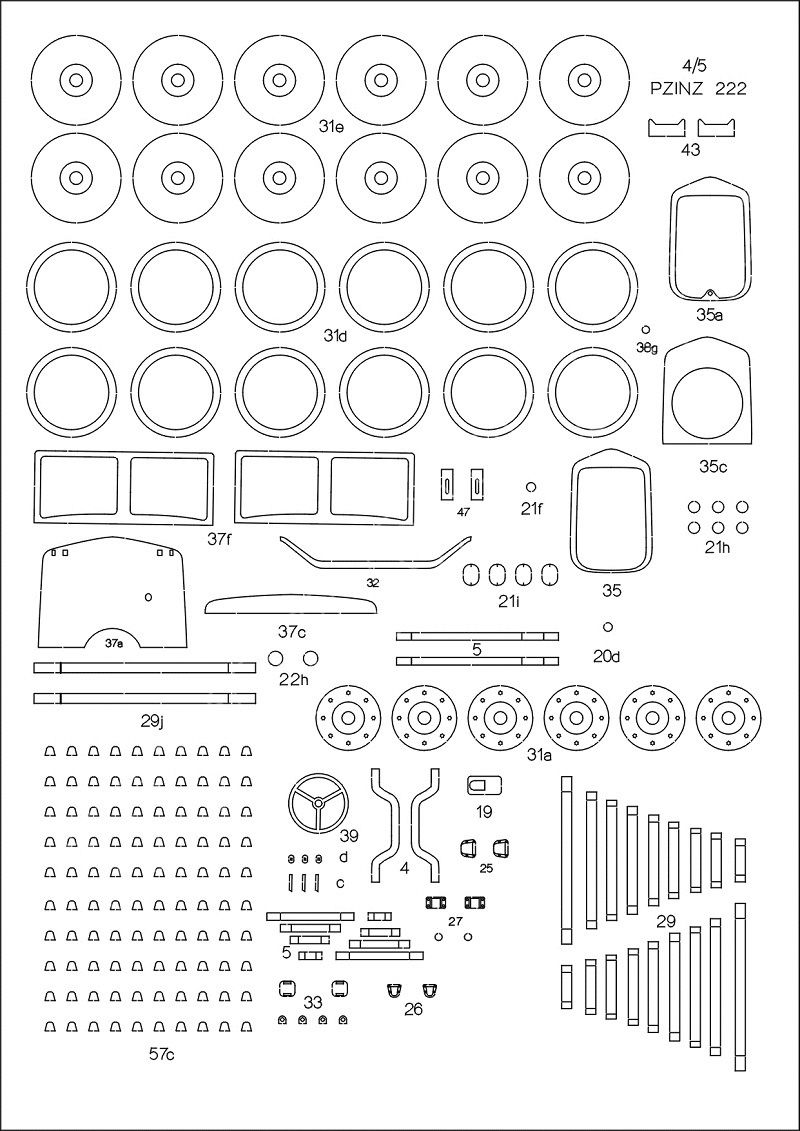 PZInz 222 Lasercut Spanten, Räder und Details