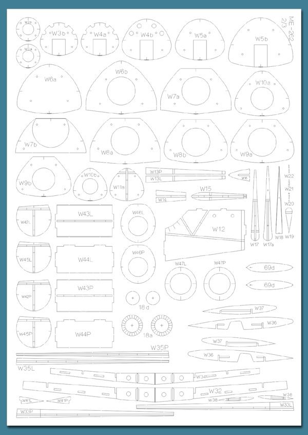 Lasersatz für ME-262 B-1/U1 Schwalbe Spanten