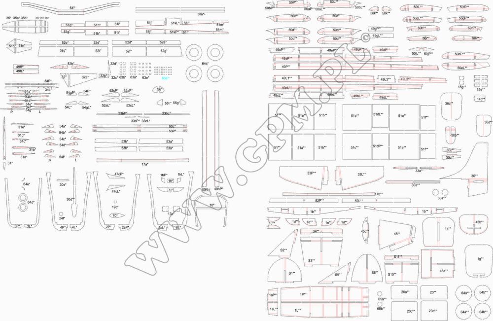 Lasercutsatz Spanten für Cessna L-19 Bird Dog
