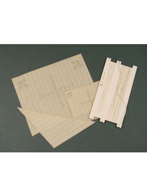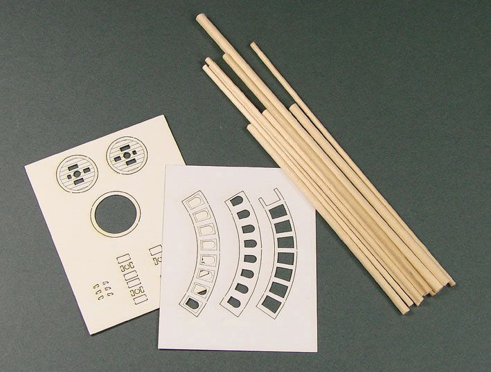 Lasercutsatz und Holzmasten mit verschiedenen Durchmessern für die Pinta von Shipyard.