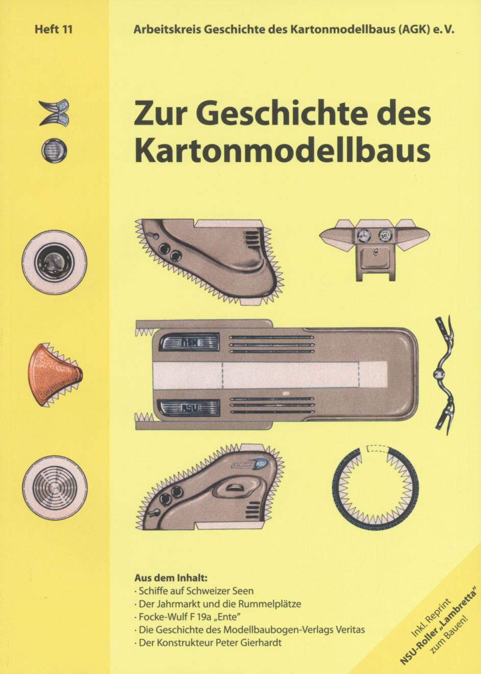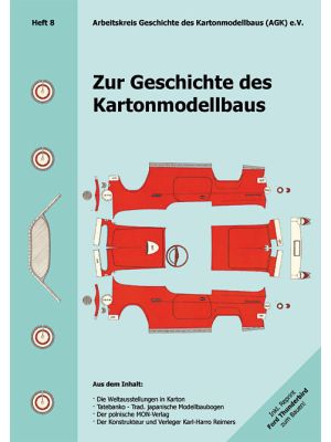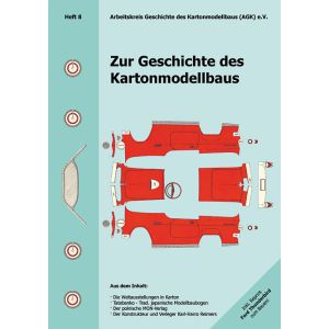 Der AGK veröffentlicht jedes Jahr ein Heft in seiner Reihe "Zur Geschichte des Kartonmodellbaus". Diese Hefte informieren über die Geschichte von Verlagen und deren Produkte, über Person und Werk von Konstrukteuren und darüber hinaus über Wissenswertes rund um den Kartonmodellbau. Diese Hefte sind Nachschlagewerke von bleibendem Wert. Ihr Inhalt ist sorgfältig recherchiert und überprüft anhand von Modellbaubogen und Originalquellen und entspricht dem aktuellen Stand der Forschung. Jedes Heft enthält die Reproduktion eines historischen Modellbaubogens mit Erklärungen zum Bogen und zum Vorbild.