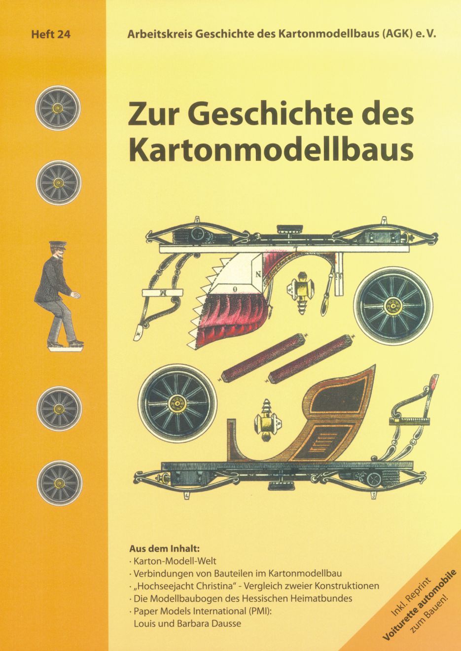 Der AGK veröffentlicht jedes Jahr ein Heft in seiner Reihe "Zur Geschichte des Kartonmodellbaus". Diese Hefte informieren über die Geschichte von Verlagen und deren Produkte, über Person und Werk von Konstrukteuren und darüber hinaus über Wissenswertes rund um den Kartonmodellbau. Diese Hefte sind Nachschlagewerke von bleibendem Wert. Ihr Inhalt ist sorgfältig recherchiert und überprüft anhand von Modellbaubogen und Originalquellen und entspricht dem aktuellen Stand der Forschung. Jedes Heft enthält die Reproduktion eines historischen Modellbaubogens mit Erklärungen zum Bogen und zum Vorbild.