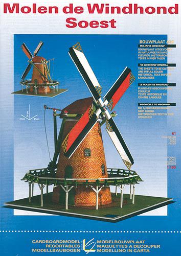 Kleindiorama mit Windmühle auf einer Grundplatte.