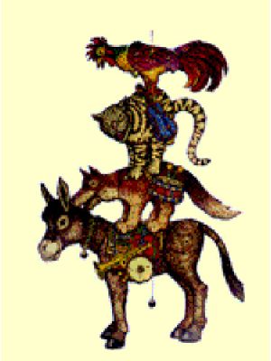 Bei diesem mittelgroßen Bastelbogen handelt es sich wohl um eine eher kurzweilige Bastelei. Der im Original aquarellierte Bogen besticht durch wunderschöne Farben und Bewegungsmöglichkeiten. Einfache papiermechanische Funktionen zeigen zum Teil sehr verblüffende Funktionen. Dem Bastelbogen ist eine ausführliche Anleitung beigelegt. Etwas Schnur finden Sie sicherlich zu Hause.