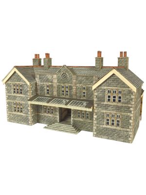 Bahnsteig mit Bahnsteigüberdachung und Rückwand