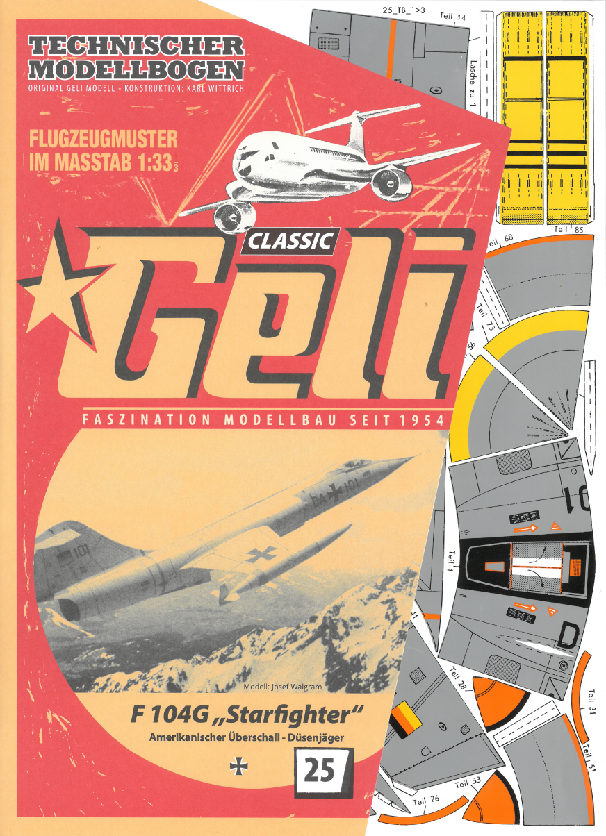 GELI-Originalmodell in traditioneller Produktionsweise hergestellt. Inklusive Zelluloid 7x10 cm für die Cockpitverglasung. Spanten auf 500 g Graufeinkarton gedruckt.