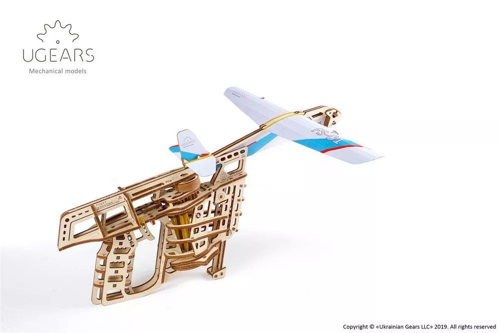Der Flugzeugstarter von Ugears ist ein neues, aufregendes und spannendes Modell. Ausgestattet mit intelligenter Mechanik ist dieses tragbare Handkatapult ein mechanischer Launcher für leicht fliegende Flugzeugmodelle, drei davon bereits in der Verpackung enthalten.