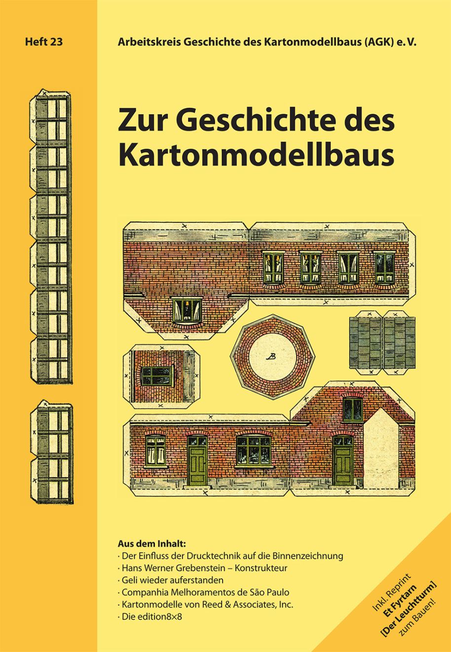 Inhaltsverzeichnis AGK Heft 23:- Dieter Nievergelt: Der Einfluss der Drucktechnik auf die Arbeit des Konstrukteurs und auf die Binnenzeichnung für Kartonmodelle.- Hans-Werner Grebenstein: Mathematiker und Konstrukteur von Kartonmodellen:Konstrukteursbiographie/br>- Walter Schweiger: Beruf und Freizeitbeschäftigung als Einheit:Geli wieder auferstanden- Francesc d''Assis López Sala: Companhia Melhoramentos de São Paulo [Weiszflog Irmãos Inc.]- Matt Bergstrom, Tom Greensfelder: Vorgestanzte Pappe statt Blech:Kartonmodelle von Reed & Associates, Inc.- Lutz Pietschker: Die edition8x8, Hamburg- Gunnar Sillén, Dieter Nievergelt: Kommentar zu Modellbaubogenbeilage:Et Fyrtaarn [Der Leuchtturm]