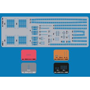 Alternativ lassen sich die Schwesterschiffe S62 Falke, S63 Geier, S64 Bussard, S65 Sperber, S66 Greif, S67 Kondor, S68 Seeadler, S69 Habicht oder S70 Kormoran bauen. Dem Nachbau des Geschwaders steht also nichts im Wege. Für die alternativen Varianten liegen komplette Austauschteile für den Aufbau und den Achtersteven bei - es müssen also keine Nummern aufgeklebt werden.