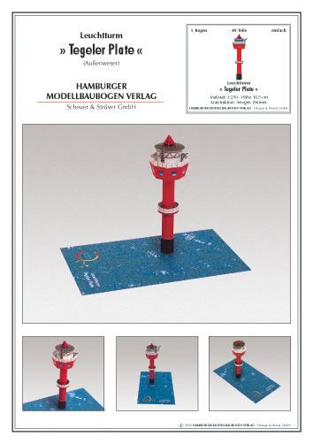 Der Turm wurde komplett in einer Werft in Wilhelmshaven erstellt und am 14. Juli 1965 an seinen Standort gebracht. Die Sektoren von "Tegeler Plate" bezeichnen jeweils die Fahrwasser von Alter Weser und Neuer Weser. Damit ist er eine der wichtigsten Schifffahrtszeichen in der Wesermündung. Modellbaubogen mit Grundplatte und Anleitungsskizzen.