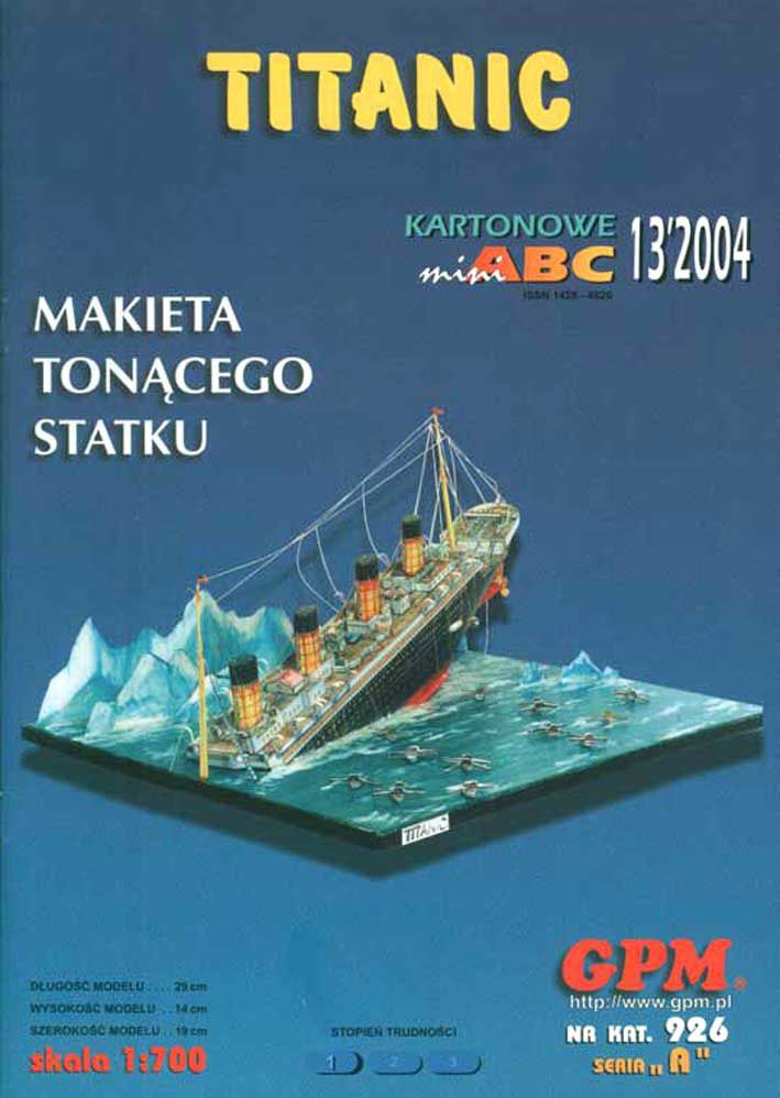 Diorama mit sinkender Titanic, Eisberg und Rettungsbooten, inkl. Grundplatte mit aufgedruckter Wasseroberfläche.