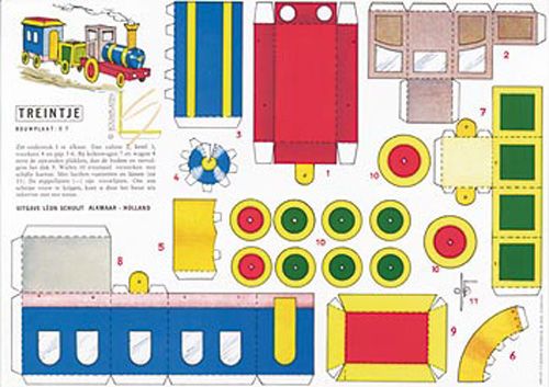 2 Modelle im Bogen: Eine kleine Eisenbahn und ein Schlepper mit Schute. Ideal für Kinder!