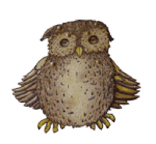 Klimpert mit den Augen, schlägt mit den Flügeln und wackelt mit den Ohren.