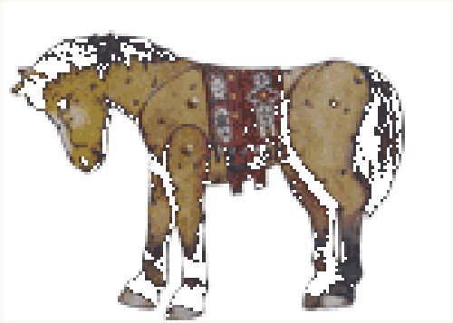 Es galoppiert durch die Prärie. Es bewegen sich alle 4 Beine, der Schweif und der Kopf.