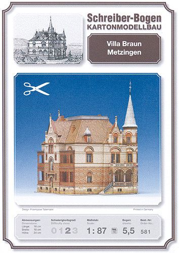 Dieses wunderschöne Modell der bekannten Villa in Metzingen passt auch hervorragend zur Modelleisenbahn. Die Fenster lassen sich vertieft bauen, was zusammen mit der ansprechenden Grafik jede Menge Detailreichtum bietet.
