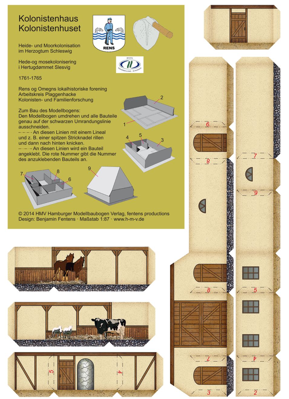 Einfach zu bauendes, ansprechendes Modell eines Kolonistenhauses in Schleswig aus dem 18 Jahrhundert.