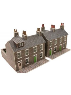 2 Eckhäuser mit Geschäften aus grauem Stein