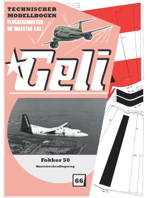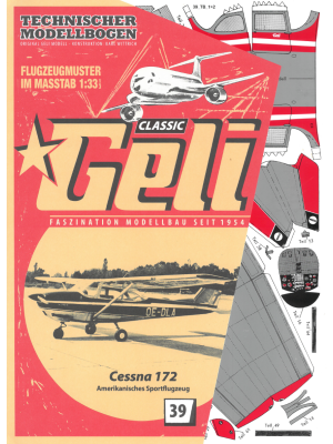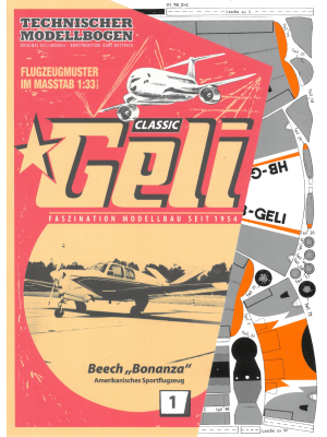 GELI-Originalmodell in traditioneller Produktionsweise hergestellt. Inklusive Zelluloid 7x10 cm für die Cockpitverglasung. Spanten auf 500 g Graufeinkarton gedruckt.