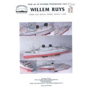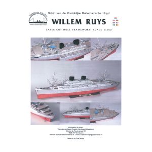 Wahlweise als Wasserlinien oder Vollrumpfmodell baubar. Mit Ständer. Im Bogen sind außerdem der Schlepper Hudson und das Binnenschiff Ebenhaezer im Maßstab 1:250 enthalten.