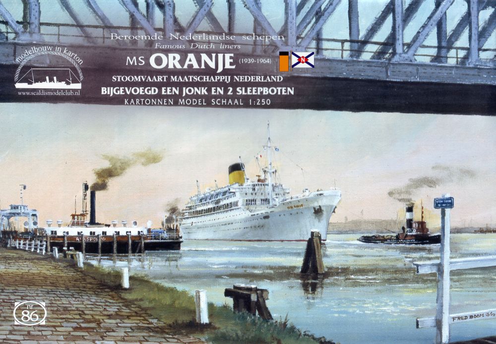 Niederländisches Passagierschiff MS Oranje mit Dschunke und 2 Schleppern