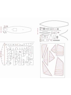 Wasserlinienmodell inklusive beidseitig bedruckter Segel