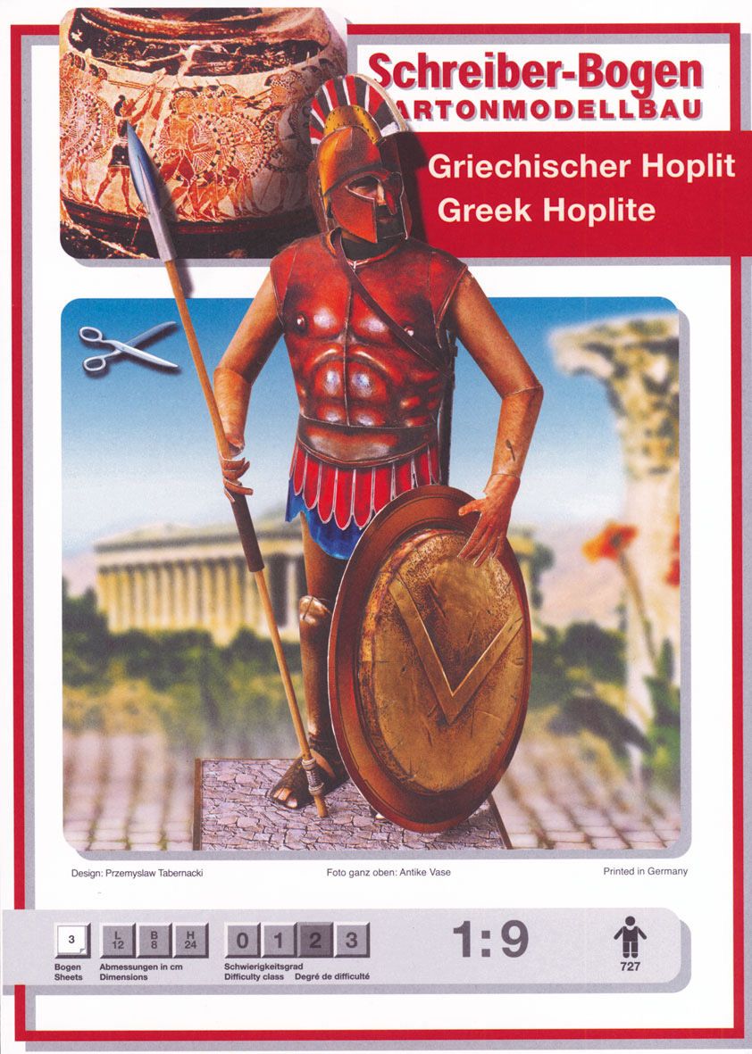 Bau Dir Deinen eigenen Hopliten. Dieses liebevoll gestaltete Modell zeigt eindrucksvoll und vorbildgetreu, wie die Hopliten im antiken Griechenland bekledet und bewaffnet waren.