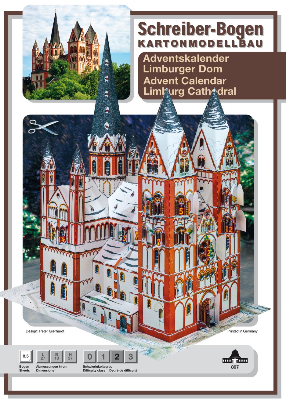 Wunderschönes Modell des Limburger Doms als Adventskalender mit adventlichen Motiven hinter den Türchen.