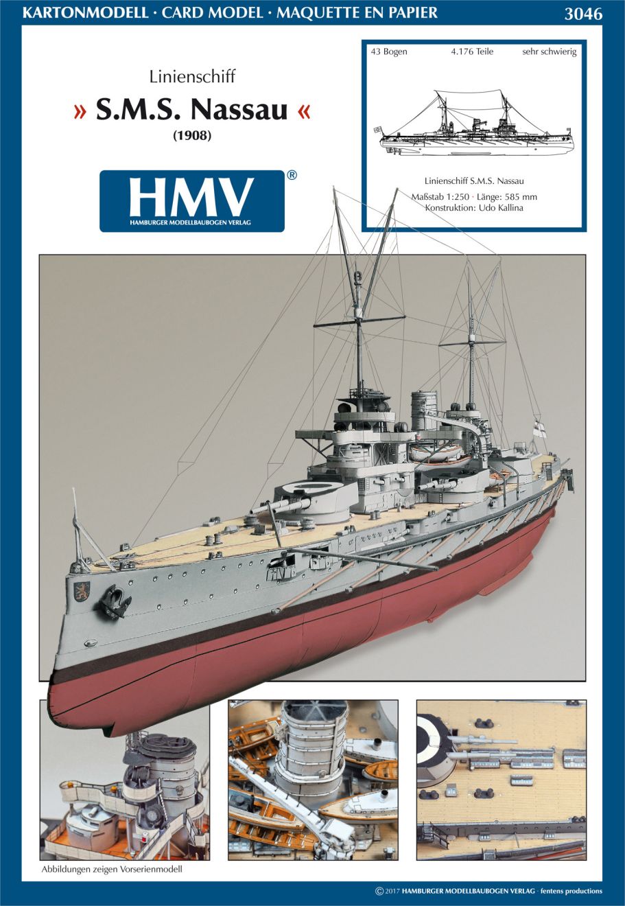 Mit dem Linienschiff Nassau ist ein weiteres Großkampfschiff der Kaiserlichen Marine vom HMV erhältlich. Der äußerst detaillierte Bogen verspricht jede Menge Bauspaß und die durchdachte von Konstruktion von Udo Kallina garantiert höchste Paßgenauigkeit und akurate Details.