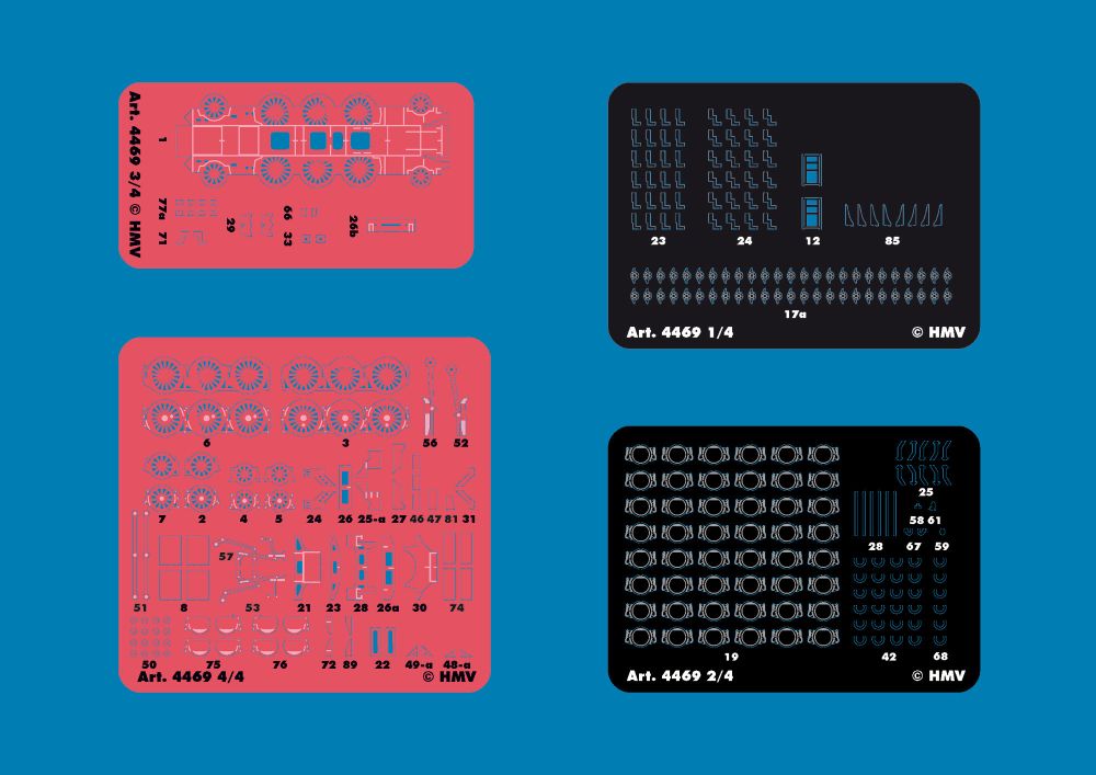 HMV-Lasercutsätze sind aus farbigem Papier/Karton. Eine farbliche Nachbehandlung ist nicht zwingend erforderlich, jedoch ohne weiteres möglich. Produktionsbedingt sind leichte Farbabweichungen zum Modellbaubogen möglich.