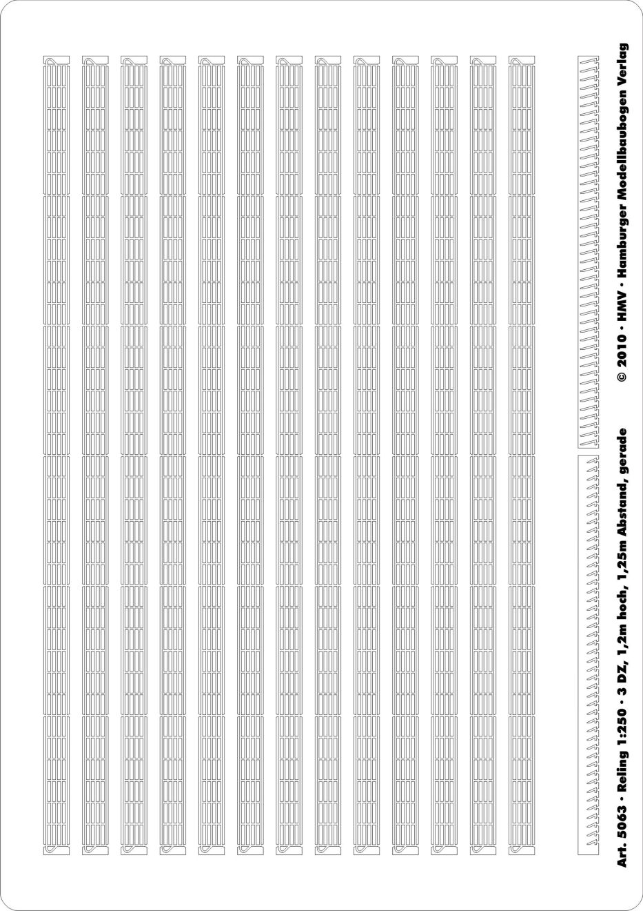 Reling 1:250, 3 Durchzüge, gerade, weiß, 1,2m x 1,25m