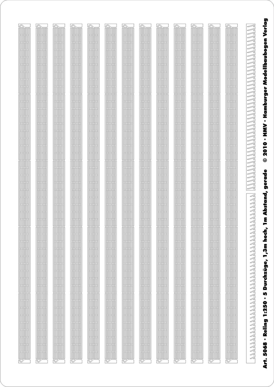 Reling 1:250, 5 Durchzüge, gerade, weiß, 1,3m x 1m