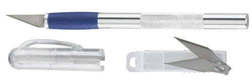 Schablonenmesser mit Gummigriff und 2 Ersatzklingen